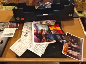 A picture of me in Paris. Postcards from our kids.  A picture of family at a brother’s Broadway opening.   Those I’ll keep for sure.
